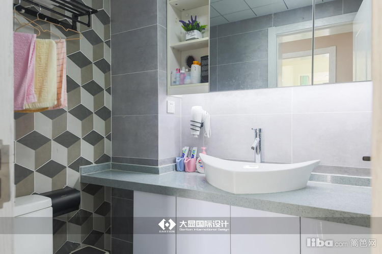 因为空间不大,所以就没有用大台盆,而是使用异形台盆,镜子也是使用的镜柜,方便收纳,镜柜下设计有照明灯