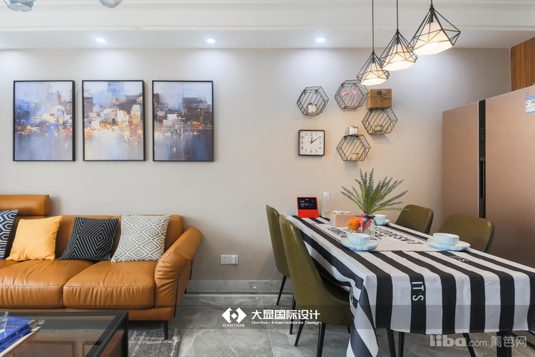 家具或者装饰大量的运用了黑色边框,整体的基础色调偏暖色的淡奶咖色,这样的搭配让人感觉舒适又温馨。