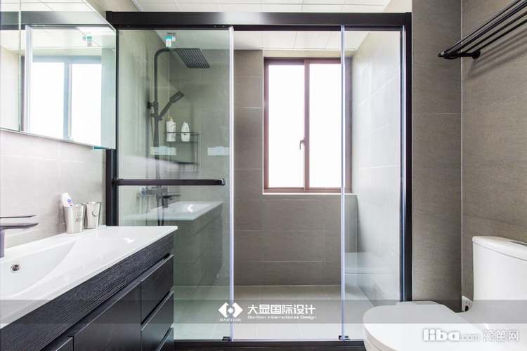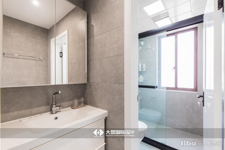 因为是三室一厅,考虑到以后会有客人来居住所以做了一个公卫,干湿分区,可以互不干涉的同时使用,墙面使用了现代感强的水泥灰,镜子做成镜柜,有更大的储存空间,可以放洗漱用品。