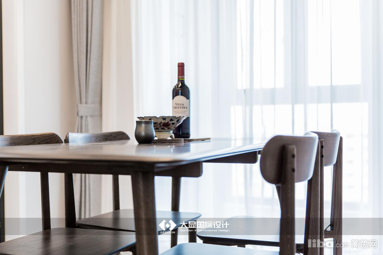餐厅的餐桌等家具使用黑胡桃木很有质感。