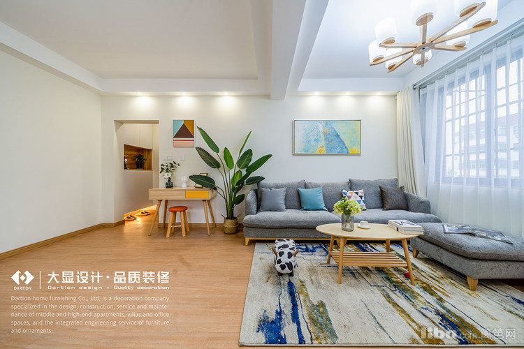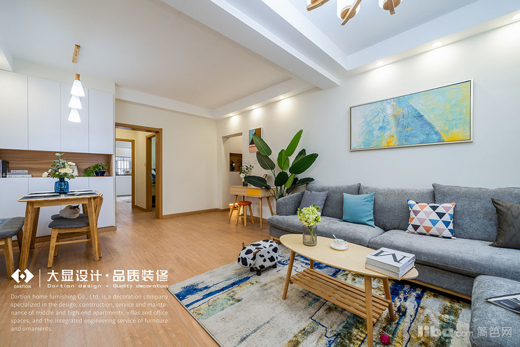 装饰画点缀浅色墙壁,木色地板给人以温柔感,深色家具舒适又柔软,轻松打造出家的温馨感