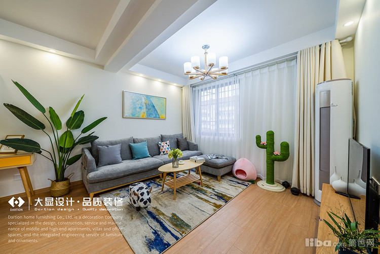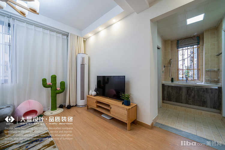 在客厅区域划分出宠物区,由猫爬架和猫窝组成,解决了宠物空间的问题,增加客厅的趣味性