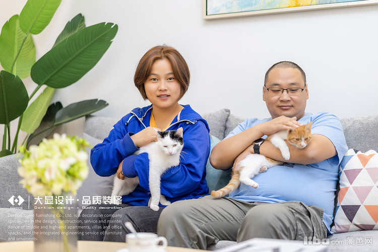 设计师和业主以及猫猫的合影