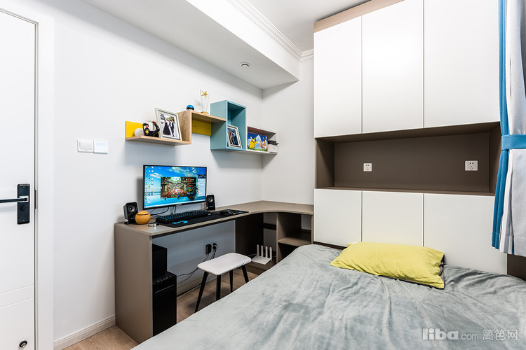 此间次卧主要是留给父母使用,当父母前来探望的时候,可以住在这里,平时是办公区和休闲娱乐的地方。