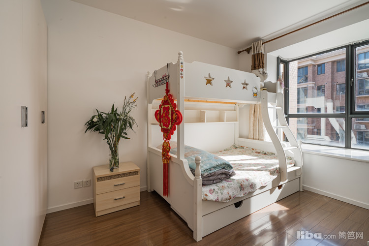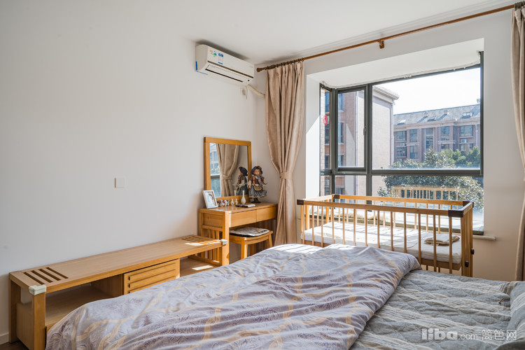 主卧为即将到来的小天使准备了婴儿床,贴心的护栏,确保天使的安全。婴儿床靠近飘窗,接近阳光。飘窗上铺设柔软的毛毯,也许后期可以做天使的娱乐场所。爱意在此铺展开来,迎接着家的新成员