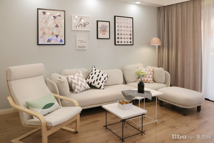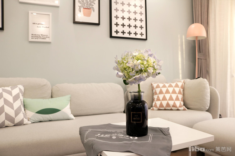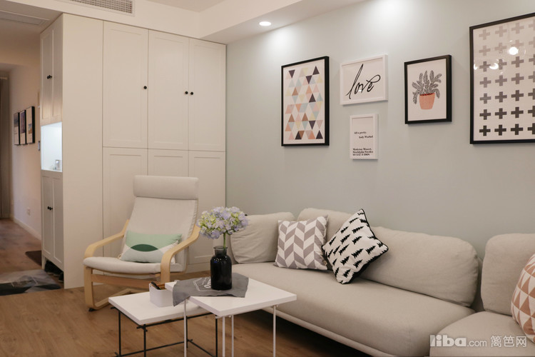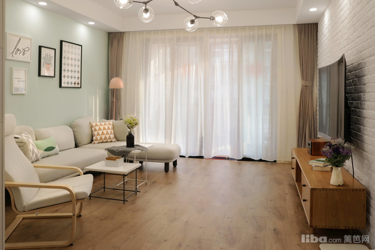 清新亮丽,颜色搭配统一和谐,阳光明媚时分,整个客厅温暖舒适。
