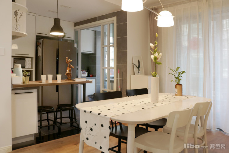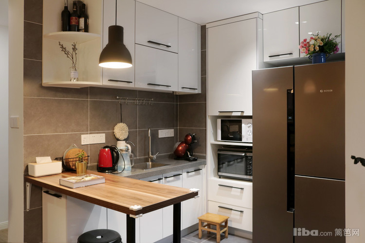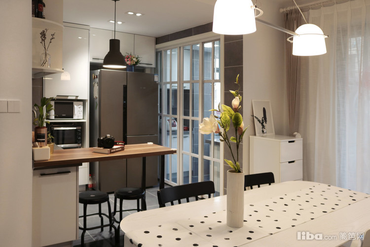 开放式的厨房,外加中岛吧台,整体气质干净简约,吃饭必须有个好心情!