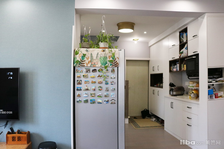 玄关距离长且宽,所以在设计的时候也特别注重这部分空间的利用,既放置了鞋柜,也安装的大大的壁橱,分区收纳,非常方便,缓解了空间的压抑感。
