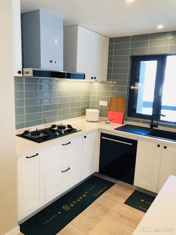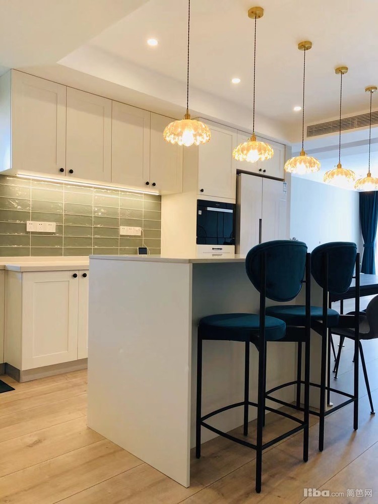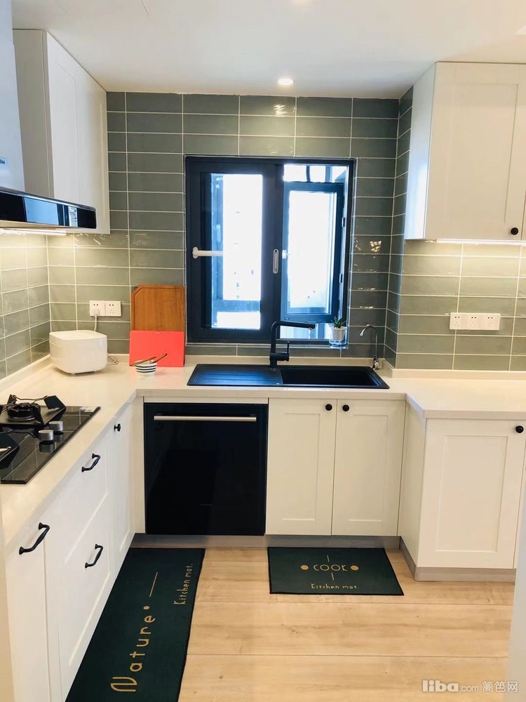 开放式厨房,绿色复古砖,绿白搭配,又有小清新