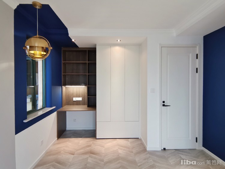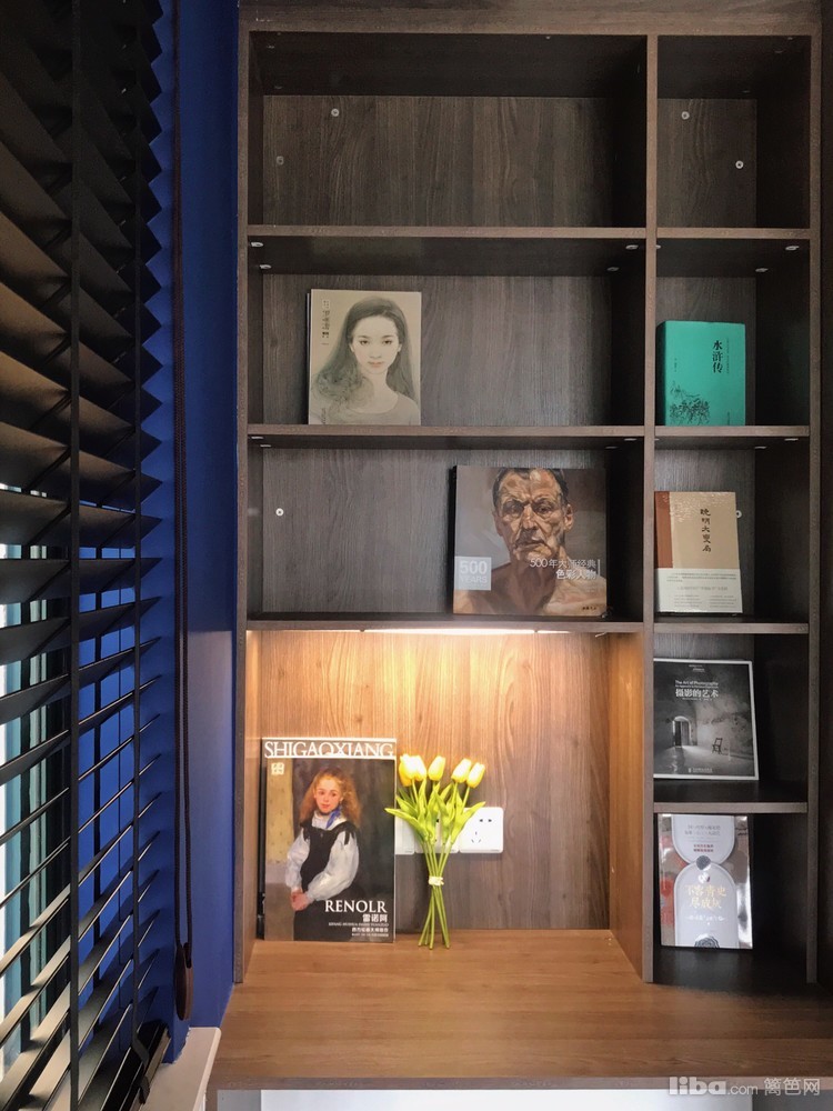 蓝色加木色搭配书房