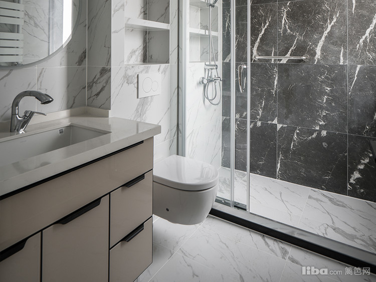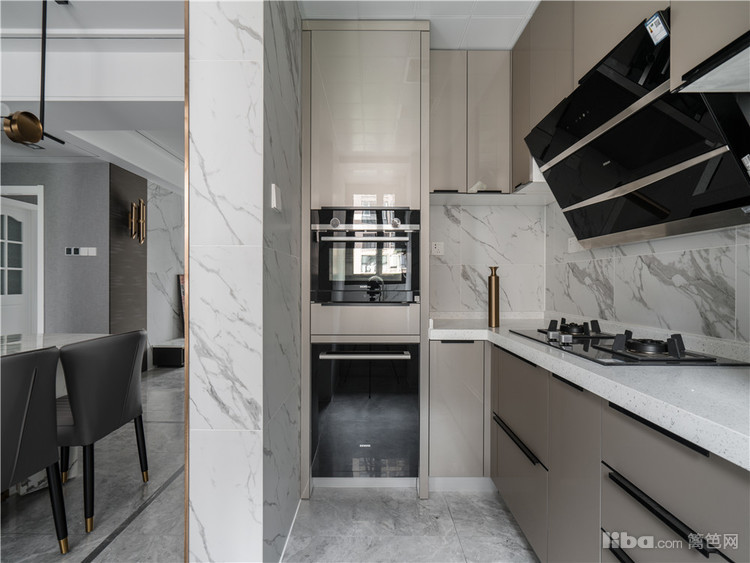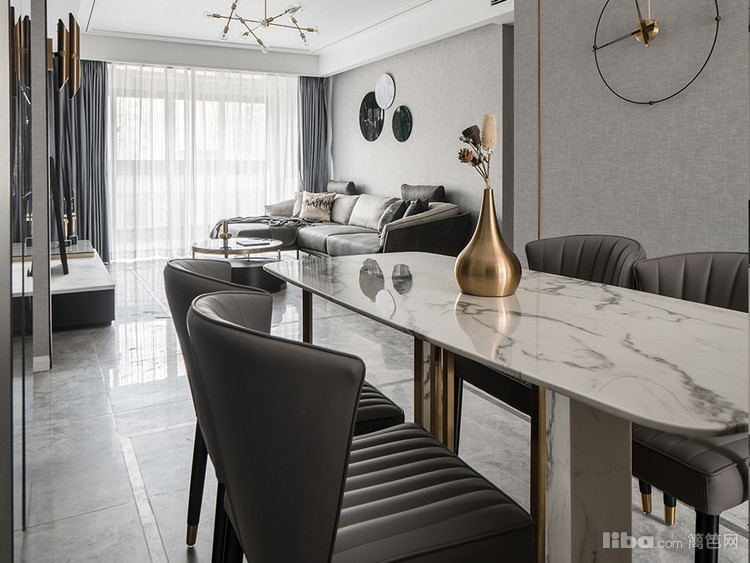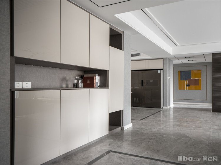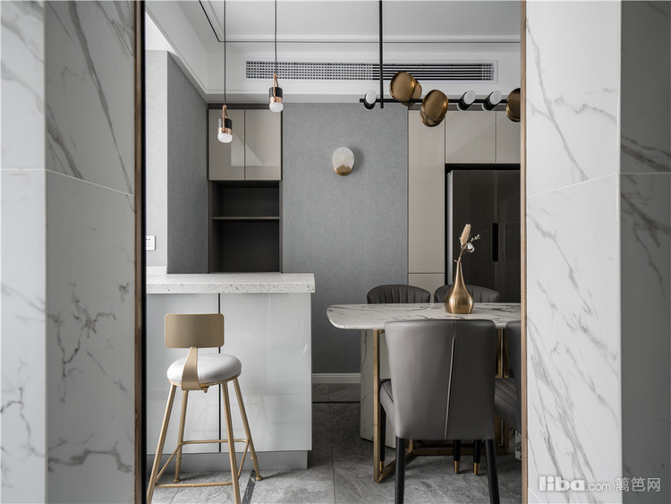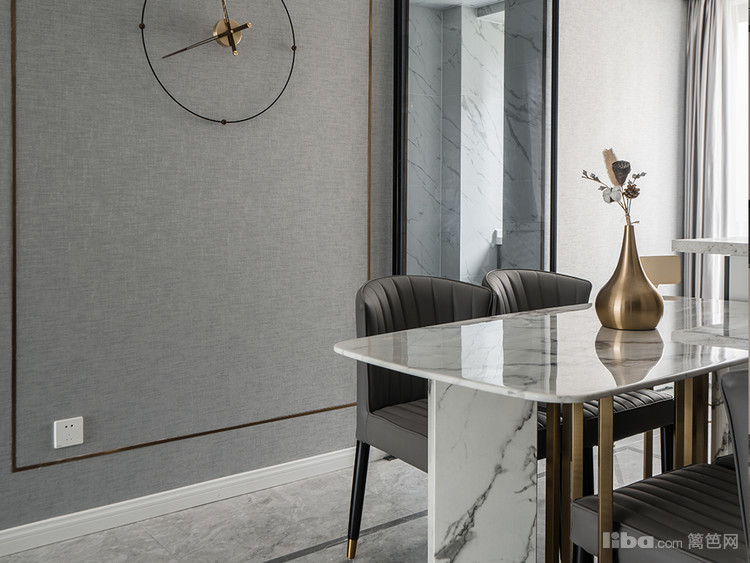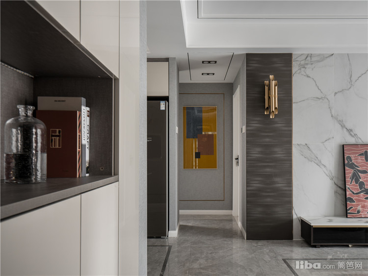 主色调采用了高级灰,再用干净的线条配合着理石、金属、玻璃等材质来提升质感,在门厅增加了一个衣帽间