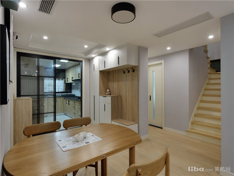 主色调以原木为主的北欧风,楼梯位置,导致没有餐厅,通风不理想,空间分割比较零碎,对楼梯进行改造