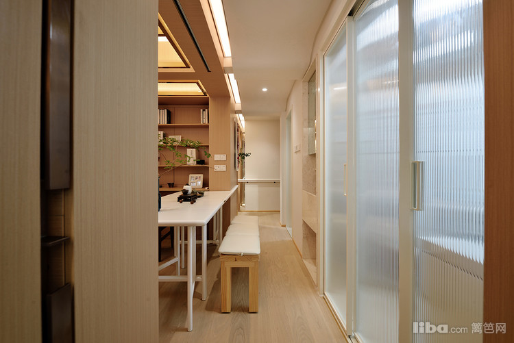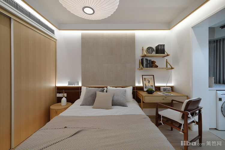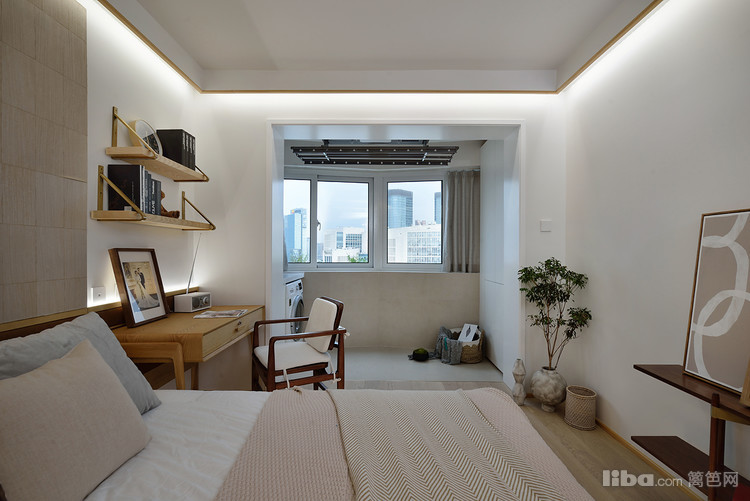 ,因为空间面积不大,空间上既兼顾了 收纳储物的实用又做了一些空间弹性伸缩变化