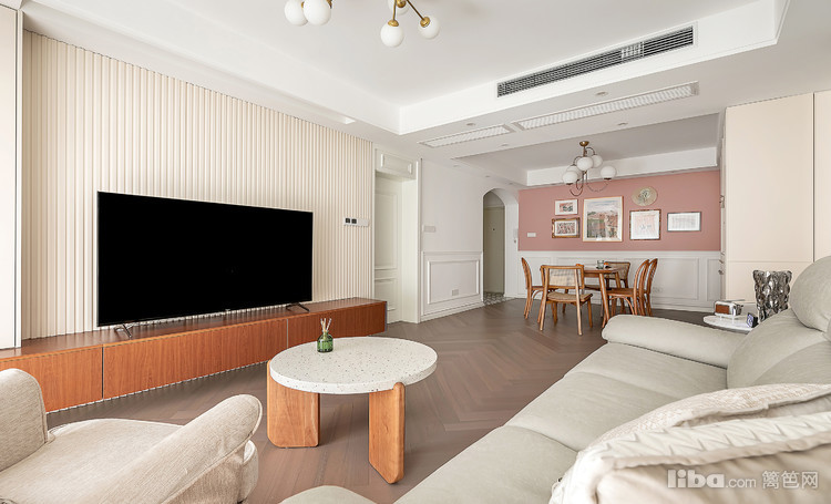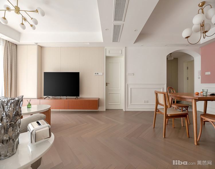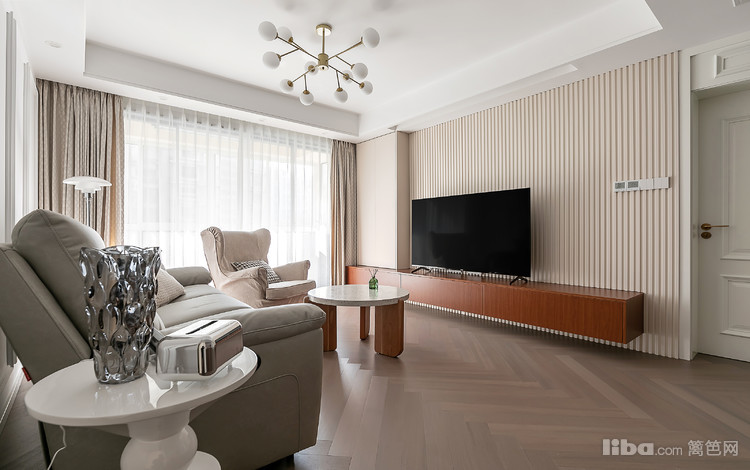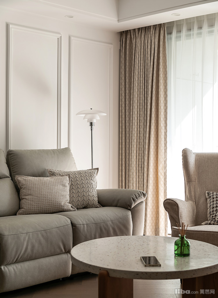 过道用了全屋的主色点题,用乳胶漆搭配木纹细腻的人字拼地板,以及做工精细的墙面装饰线条,从硬装上给空间一个雅致清透的基调。瘫在舒适的一角,可以尽情享受自己的时间。
