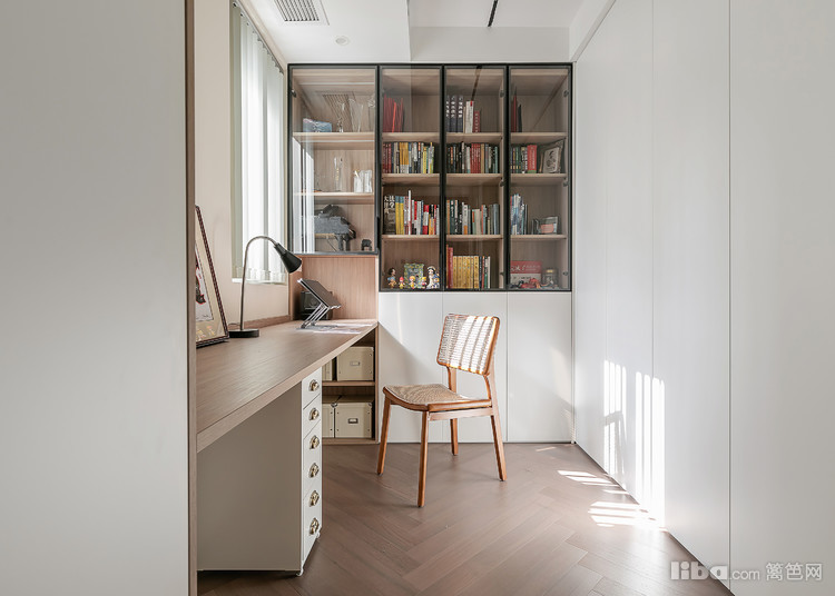 书房木制百叶保留自然光线,搭配小台灯,制造阅读氛围。