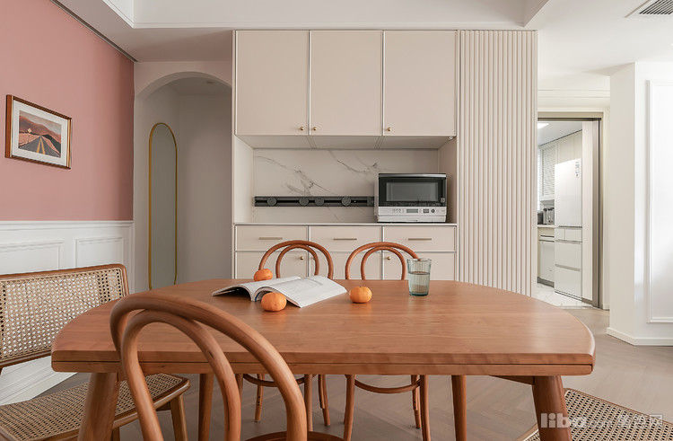 餐厅既有空间布局上的细小改动,带来更好的居住体验,也有软装上的精细选择、处理,让整间屋子就像一颗小小的珍珠,统一的元素通过精心的搭配,让屋子里每个空间联结成一个统一精致的整体