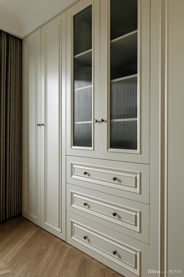 卧室家具摈弃了传统美式,挑选深色中古风,在米白色的基调映衬下,复古时尚又不失优雅。