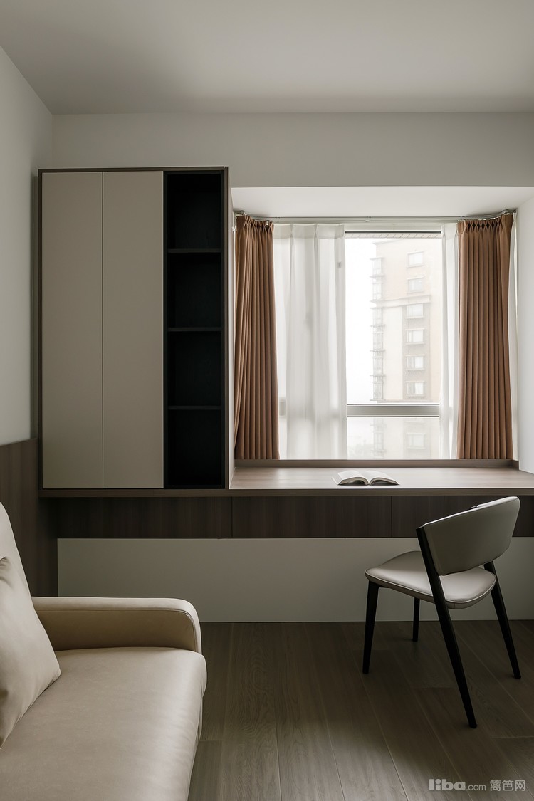 书房的多功能设计,利用飘窗作为书桌,变身为一个舒适的居家办公小角落。结合书柜及半墙装饰背景,使空间变得更加灵活多变。