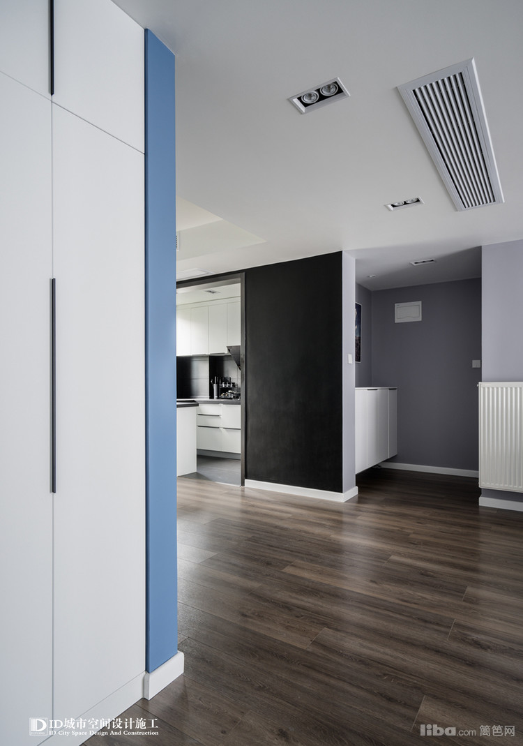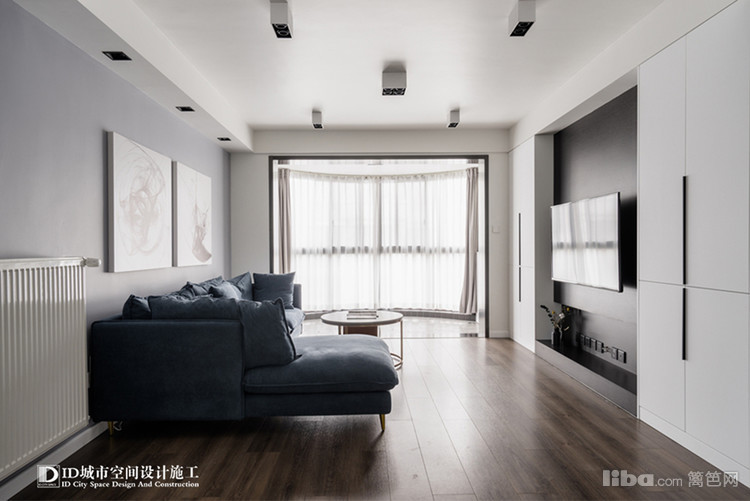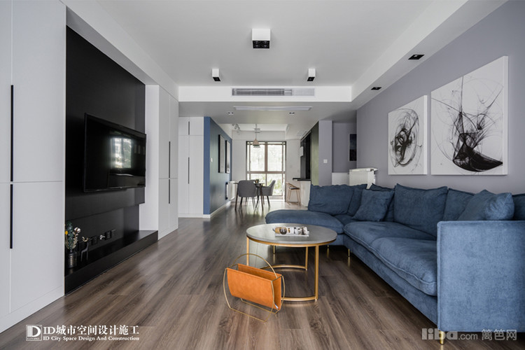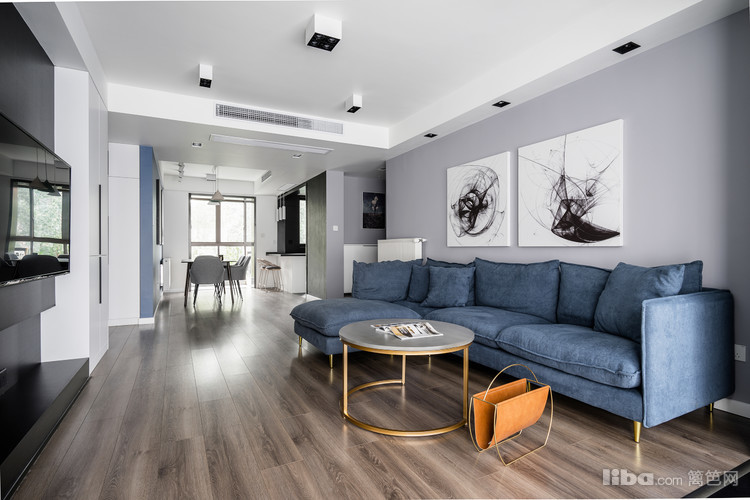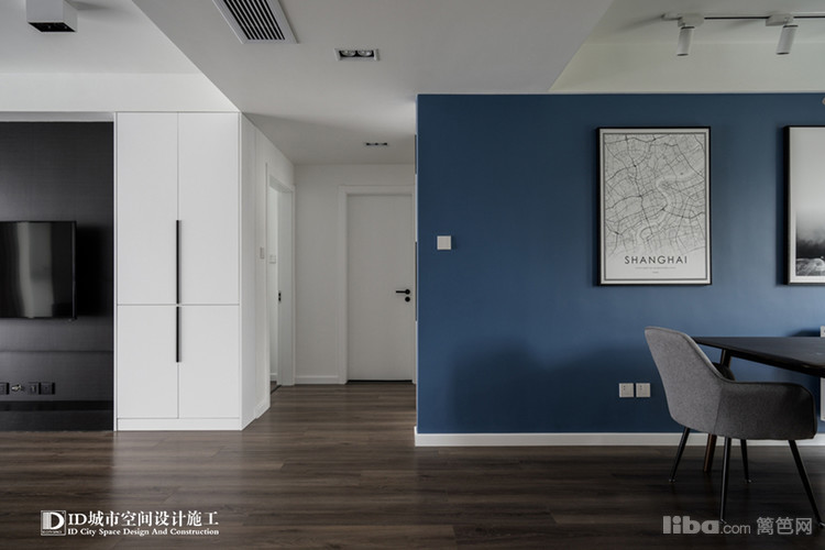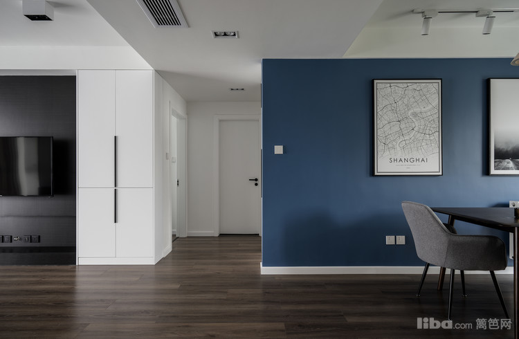 对全屋的印象就是素净,简洁。冷色调墙面的现代简约。客厅包括卧室都采用无主灯设计,靠墙的LED灯来采光,光纤更均匀,并且也符合中国的风水学说。