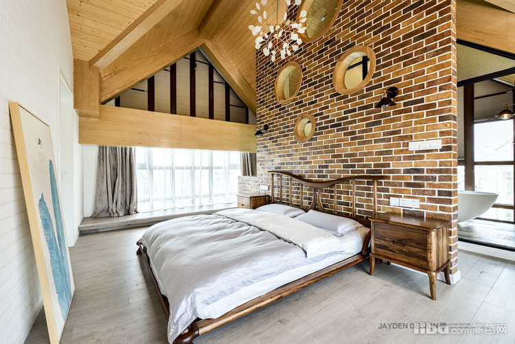 发散的花苞型吊灯,让略显粗犷的卧室也有精美的细节。