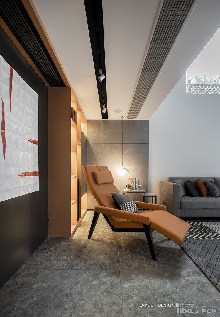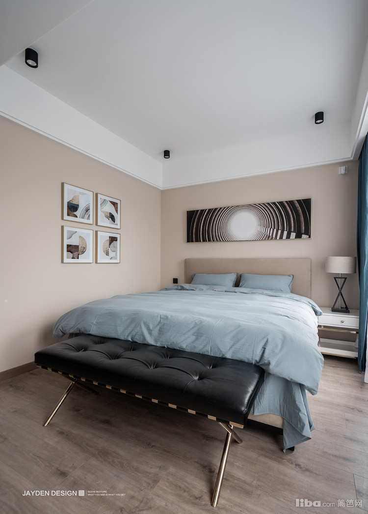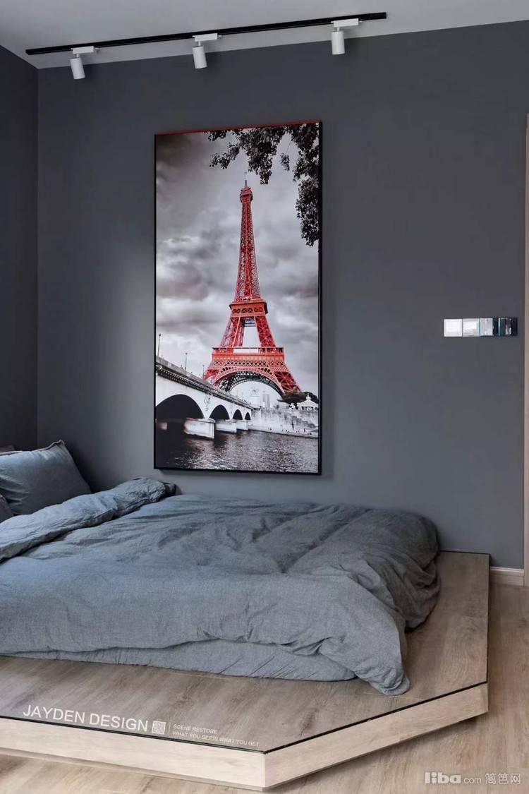 次卧在设计上用了比较个性的摆放方式,用地台的形式代替了传统床,摆放休闲沙发让空间兼具娱乐性。