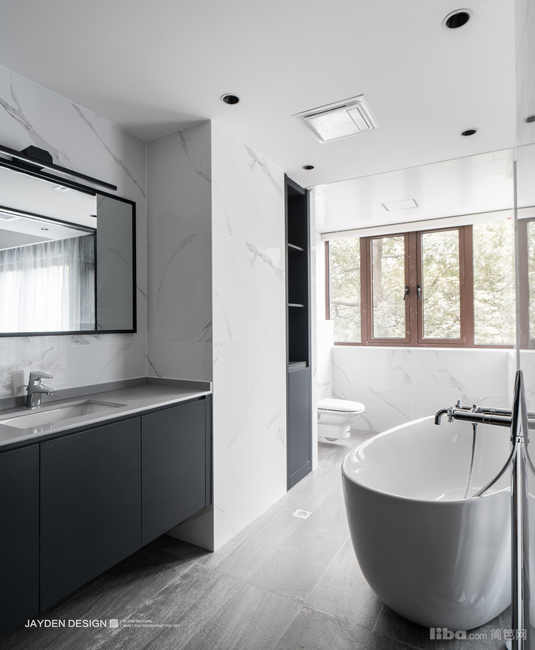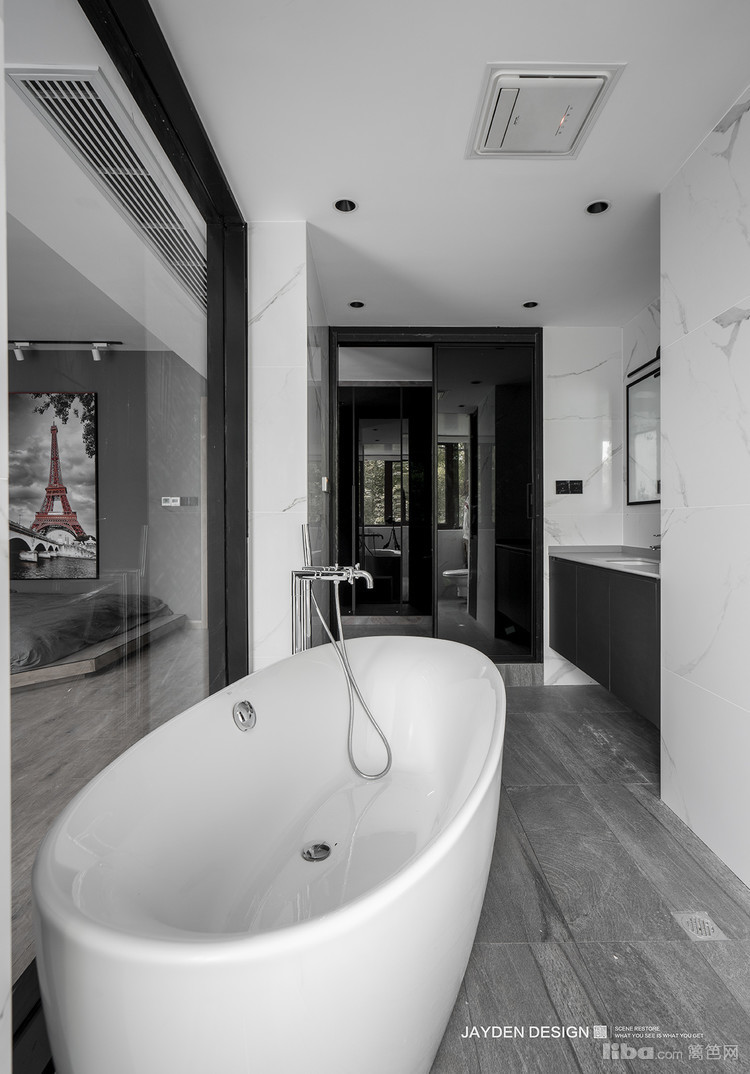 卫生间的墙面改为玻璃,增加空间的延续感。
