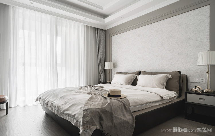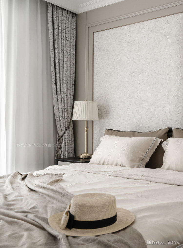 主卧的整体设计依然摒弃繁复,保持了和公共空间一致的柔和雅致的色调。