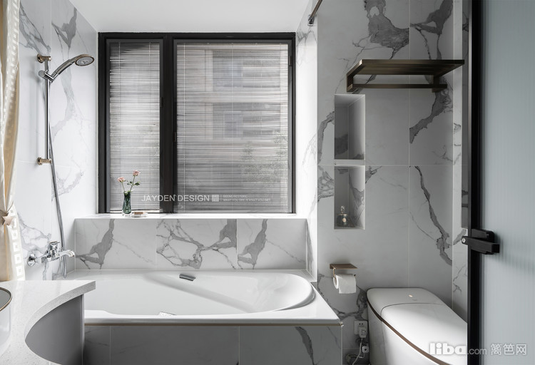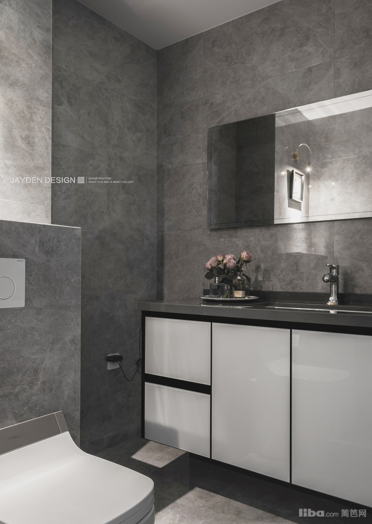 次卫主要是男主人使用,兼有客卫功能,黑白灰的经典配色体现了男主人的绅士风格。