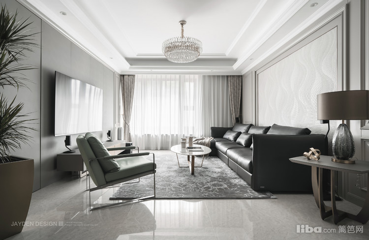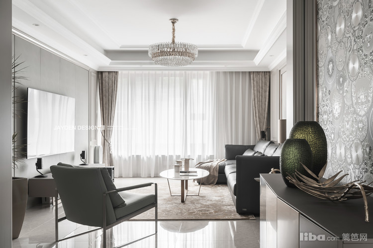 南北通透的客餐厅,采光极佳。渐变的水晶吊灯,为客厅平添一丝华丽。