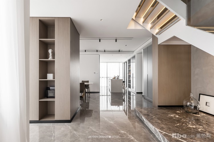 豁然开朗的同时,楼梯间的纵向空间也进一步放大,让整个楼梯间形成局部挑空,观赏性和互动感更为加强。