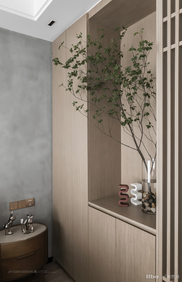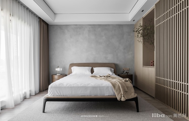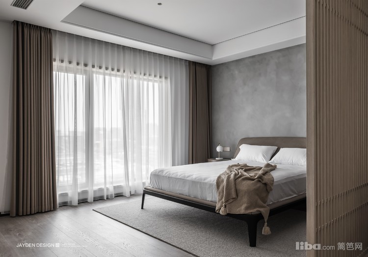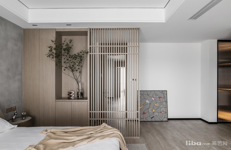 主卧是最为贴近屋主内心的私密空间,玄关给予安全感,半透的木格栅让空间不被完全分隔。睡眠空间的大小适宜,正好符合屋主内心的安全尺度。