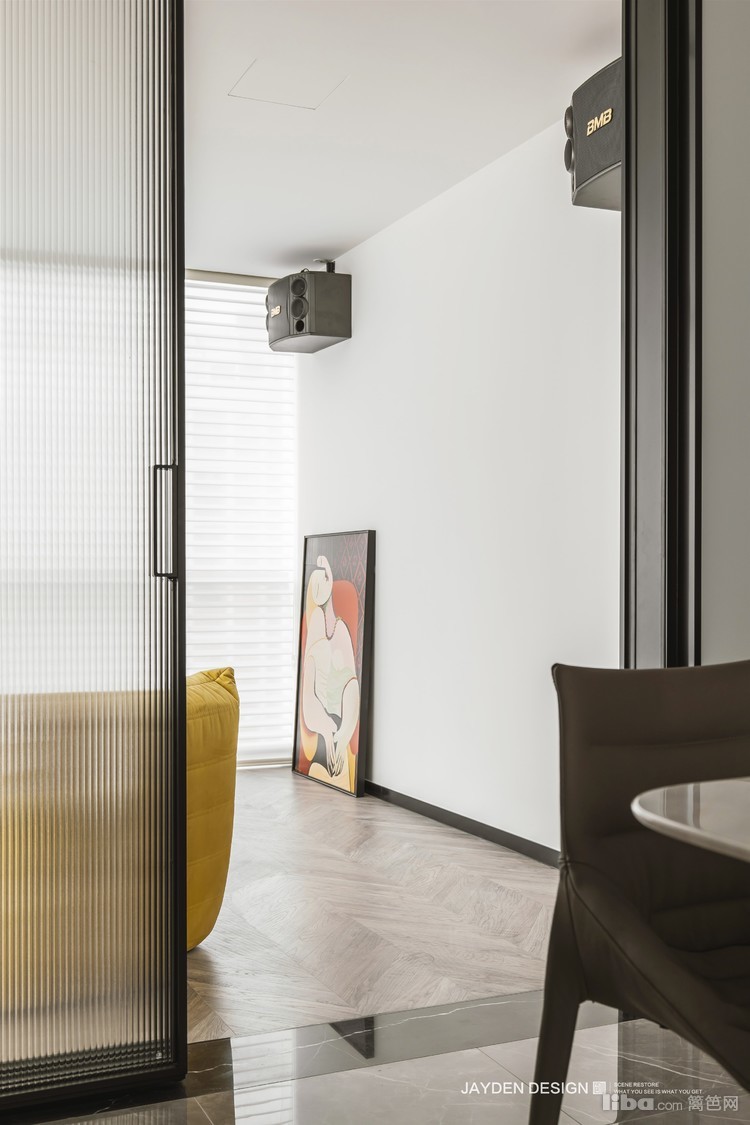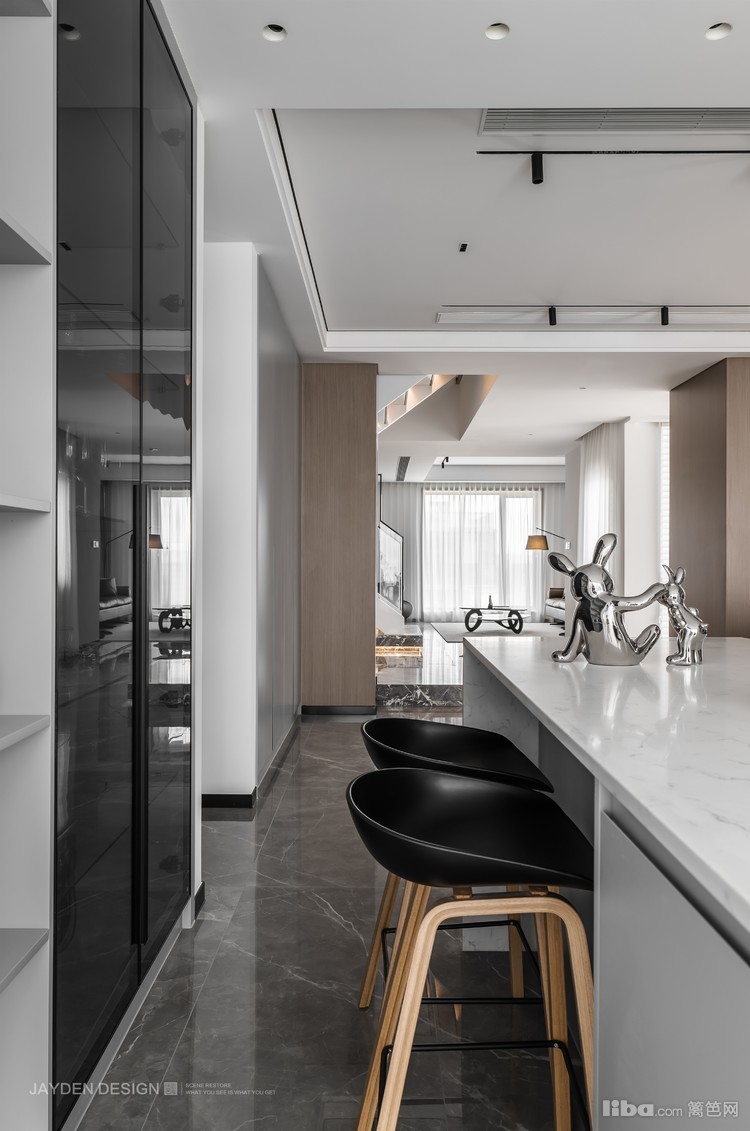 和餐厅一样,照明光源采用暗藏轨道的磁吸灯,可任意调整照射角度,体现出光源的多变性。