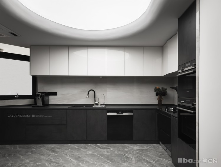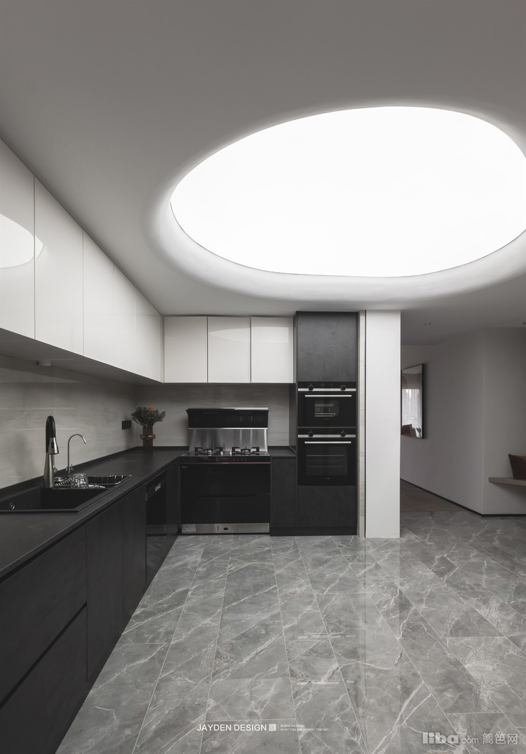 黑色下柜和白色上柜的经典组合,则更具视觉冲击力。