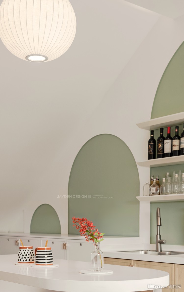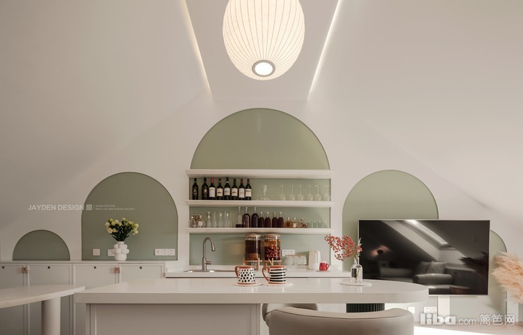 阁楼是专门为喜爱DIY酿酒的女主人打造的工作室,这里集会客、娱乐、休闲和收纳等多功能为一体,是女主人最喜欢的一方自由天地。