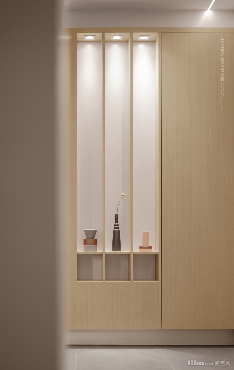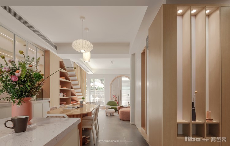 改造后的门厅进深达到2米多,原木风格的玄关一眼可见,也为一层的客餐厅空间奠定了基调。