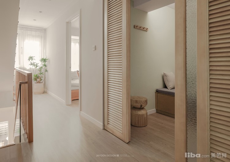 二楼过道的中间区域,原本是一个封闭的杂物间,我们将之打开后,设计了一间多功能房。