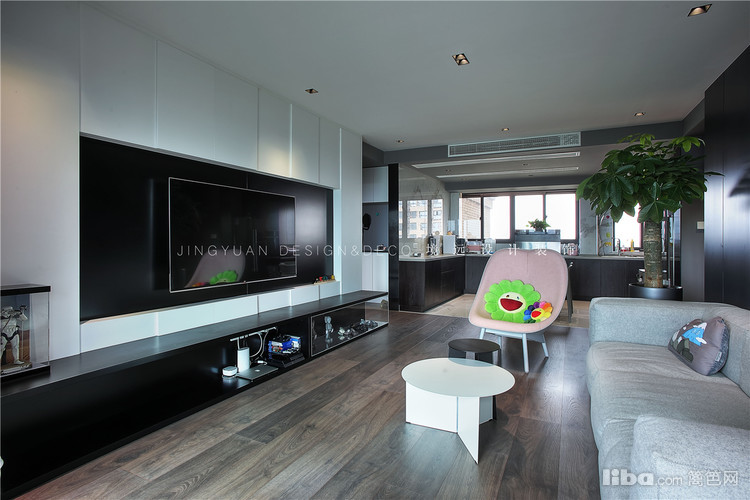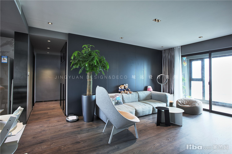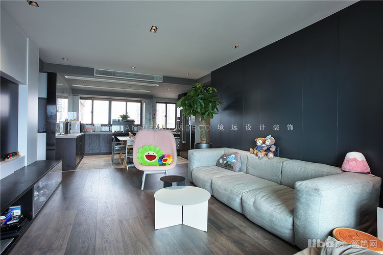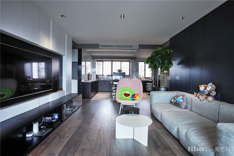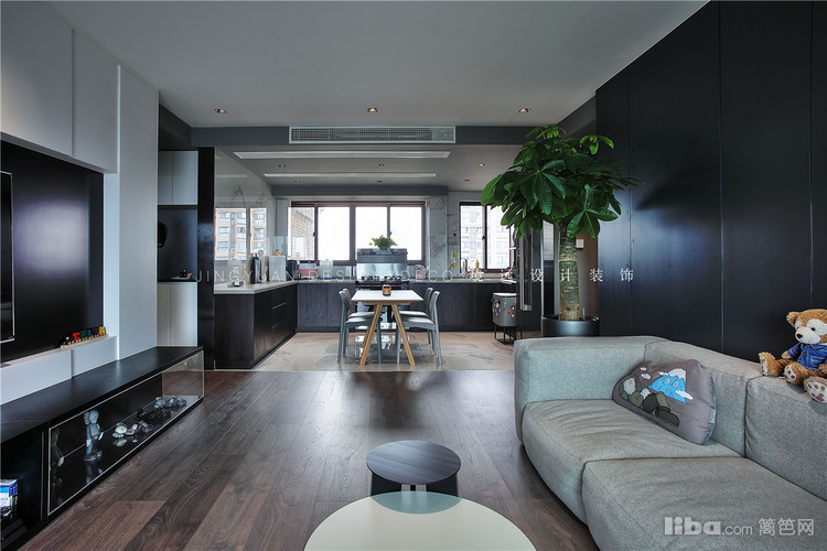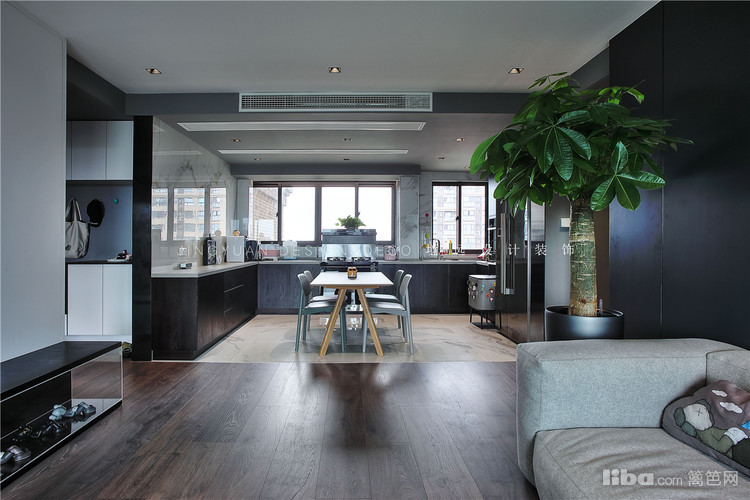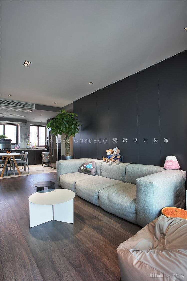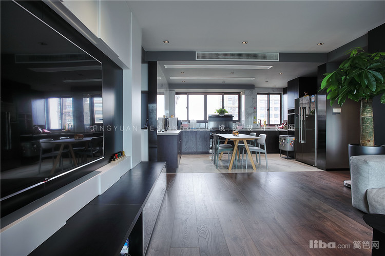 客餐厅整体以灰白黑为主,整个空间灯光采用了无主灯的方式,尽显沉稳和干练。
