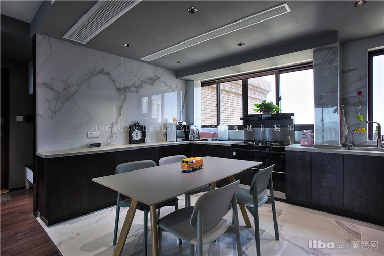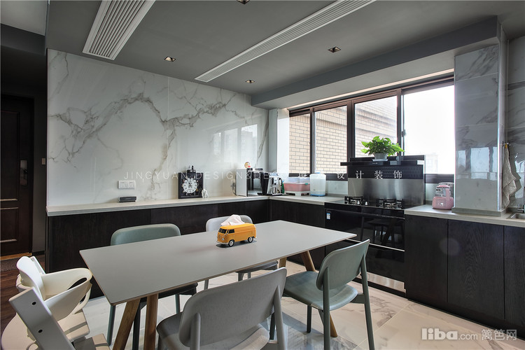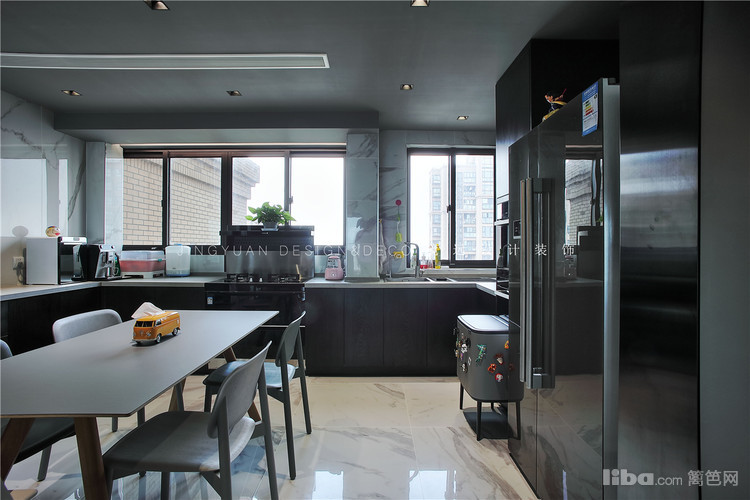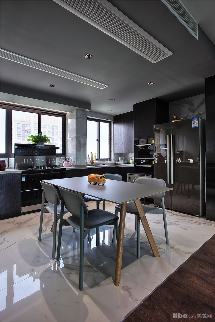 餐厅、西厨、中厨合为一体,极其流通的空间。U型的开放式厨房,为居家生活注入了流动感和节奏感。