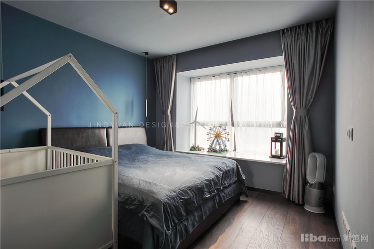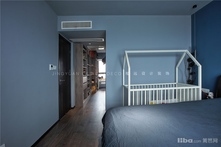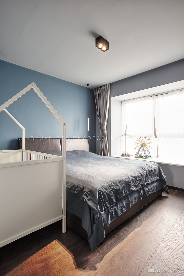 主卧背景墙并没有做过多的装饰,简约垂挂灯的设计,略带酒店风格的质感,也延续了整个房间的简约风格。