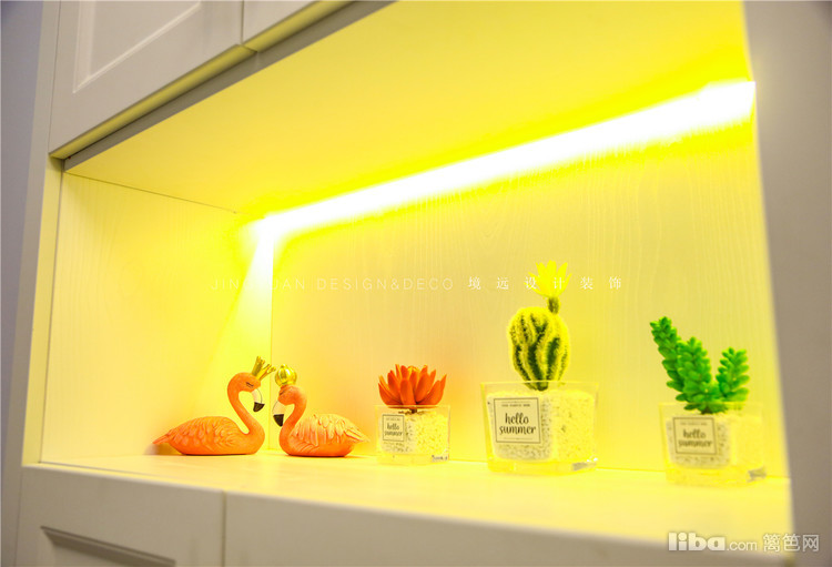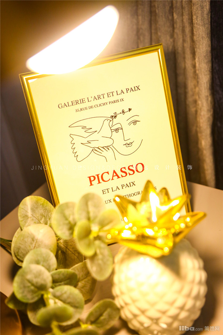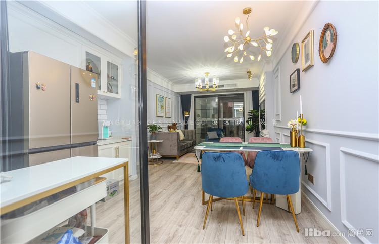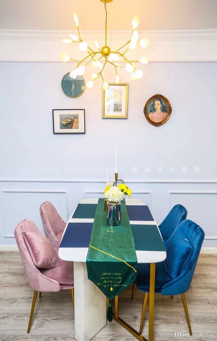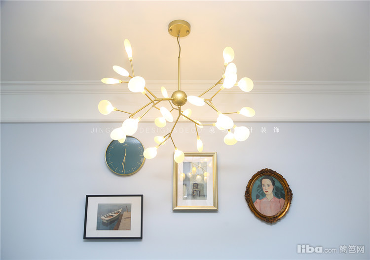 餐厅墙面采用石膏线用来做墙群装饰,配上复古的装饰画框以及萤火虫吊灯,碰撞出一股不一样的浪漫风情。