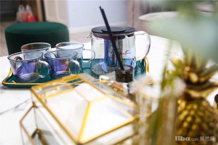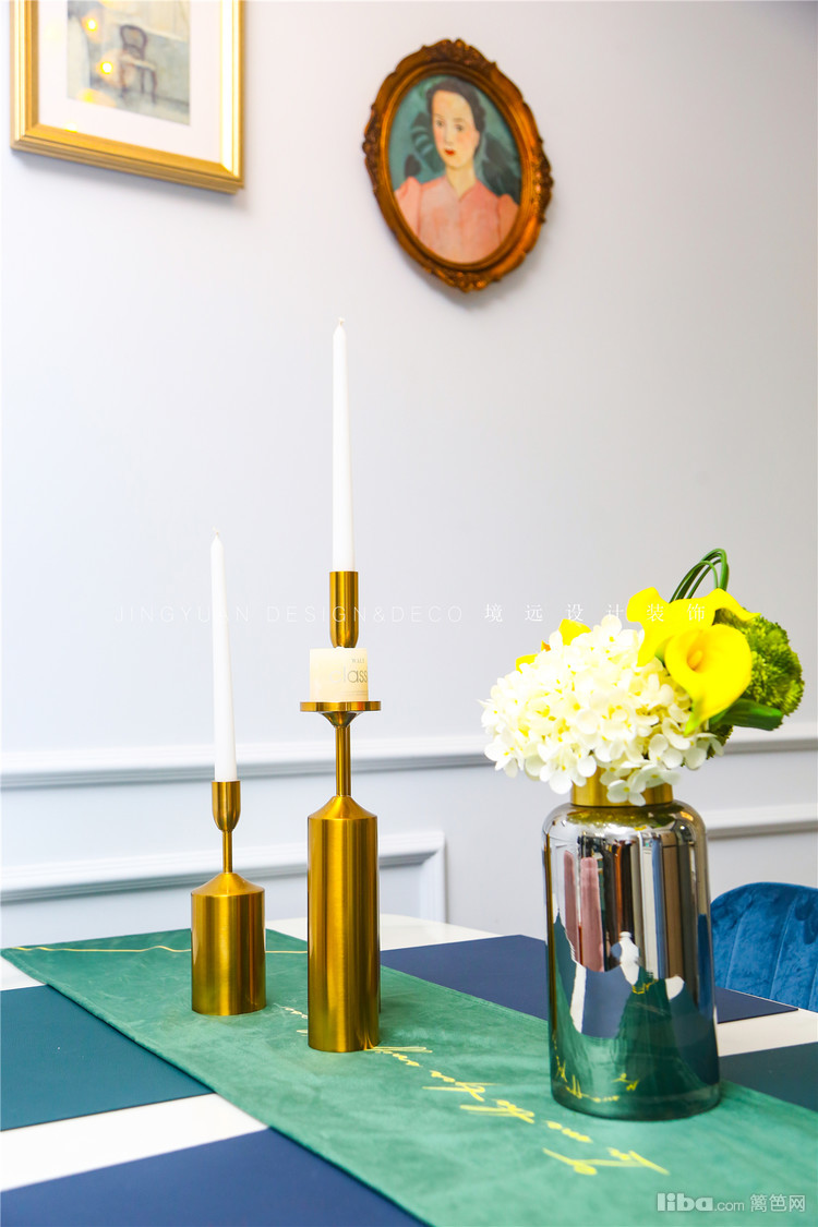 白色大理石桌面+绿色桌旗,用插花和蜡烛点缀装饰,就餐瞬间变得更有仪式感。