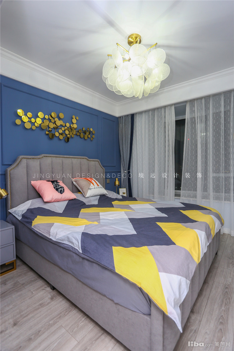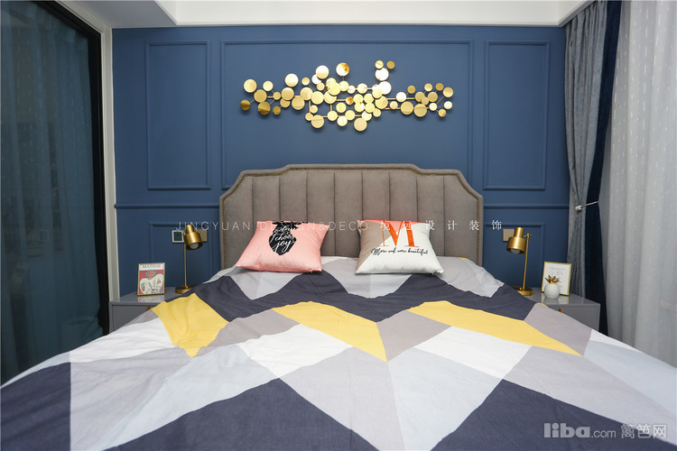 主卧以蓝灰色为主色调,自然清新,营造出放松而舒适的休息环境。