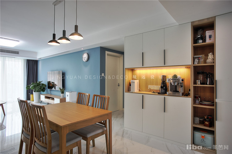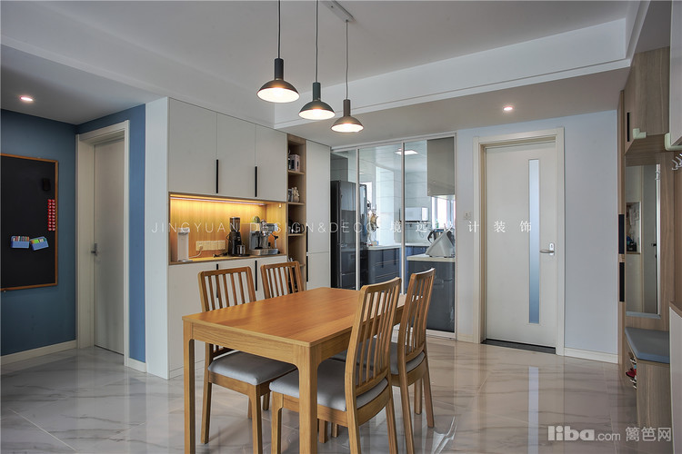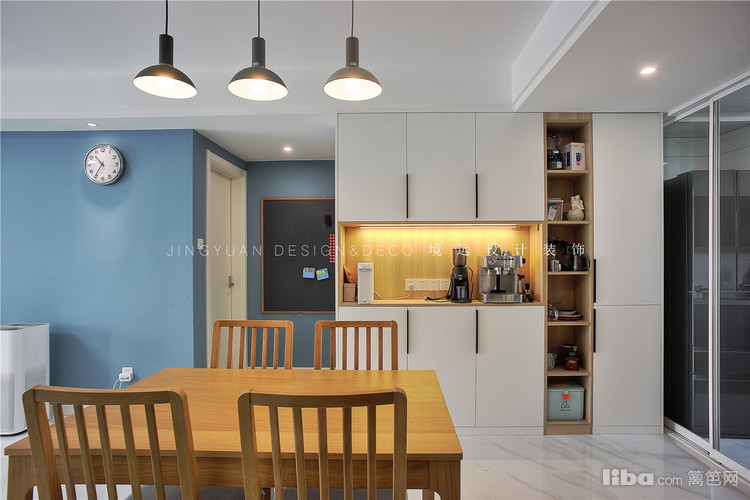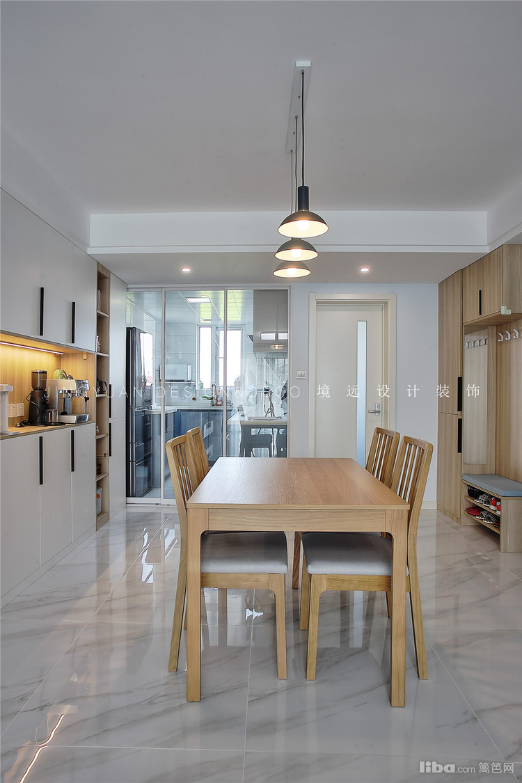 餐厅:餐厅在中心位置,相对比较灵活,也可以摆放大的桌面;