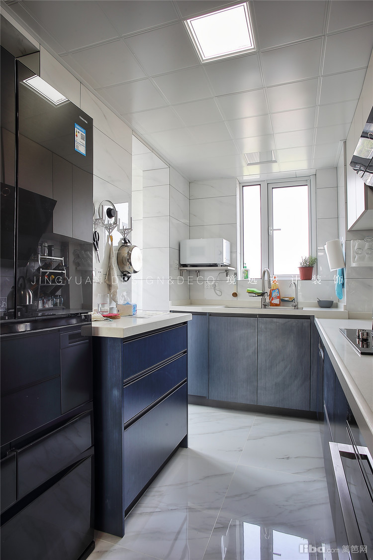 把小阳台作为设计阳台扩进厨房,冰箱墙体内凹至小孩房