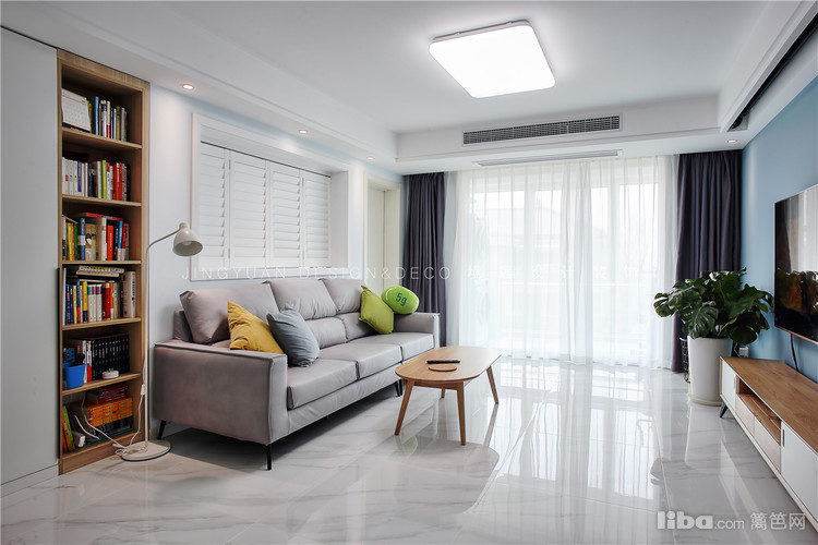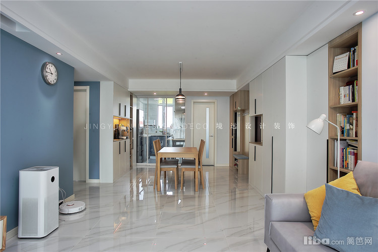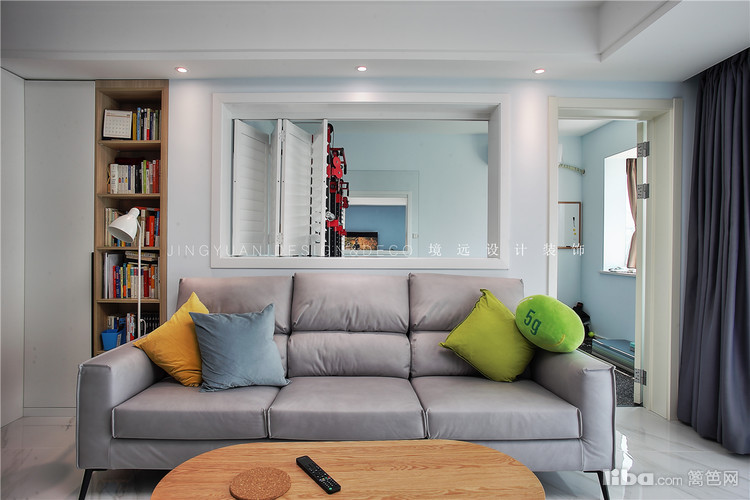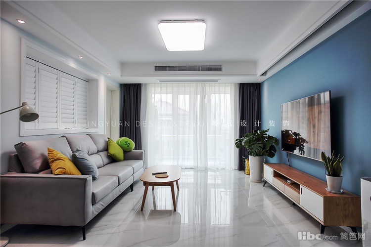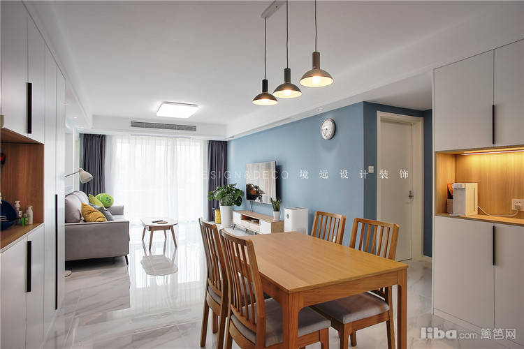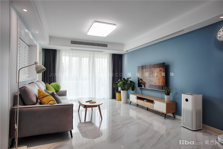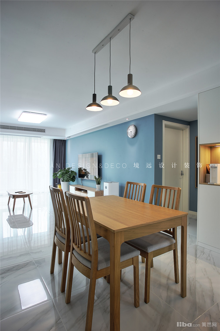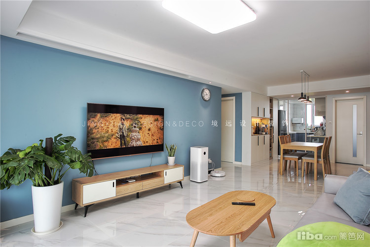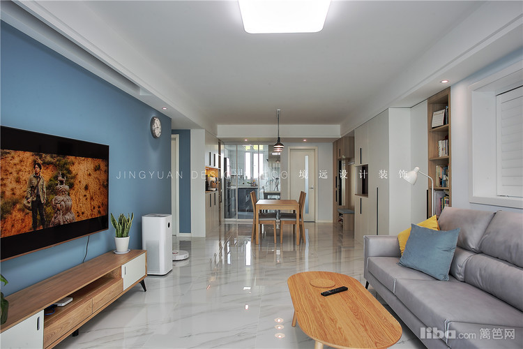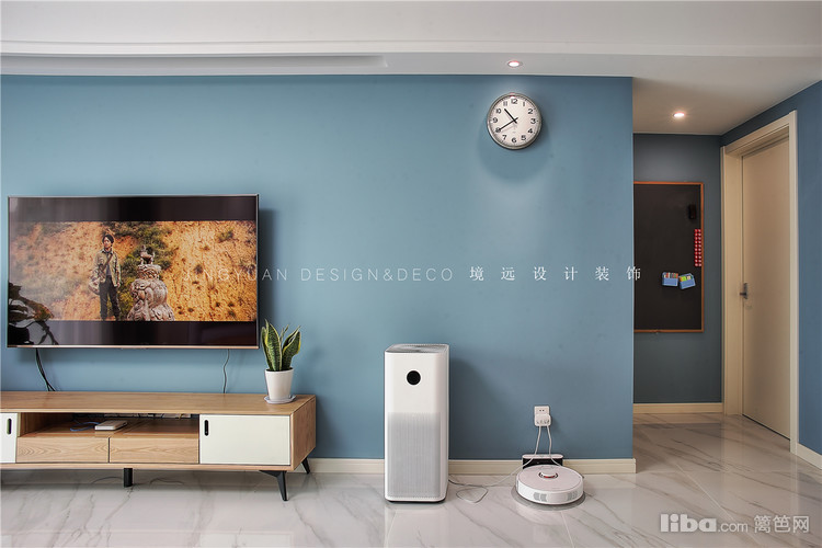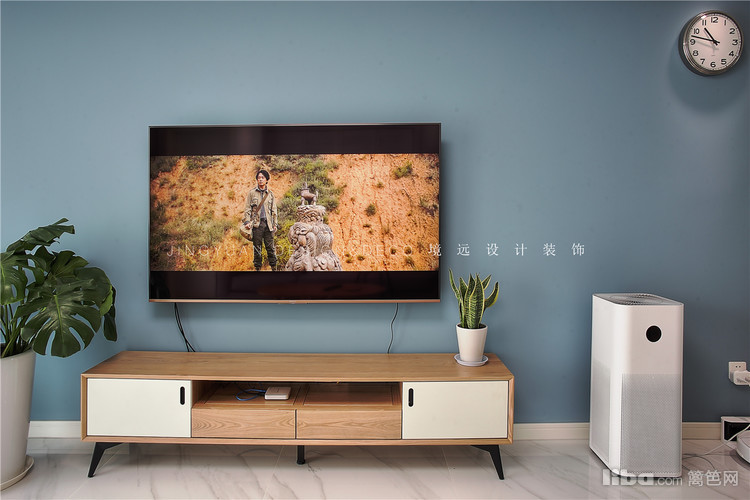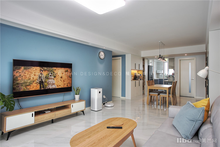 客厅主题墙运用了蓝色系的色调,形成了轻松愉快的主体,给以后的摆放留下了足够多的空间和想象;