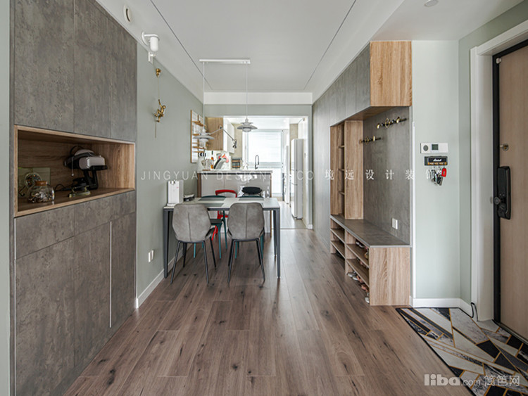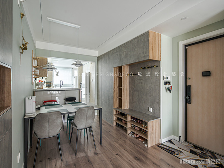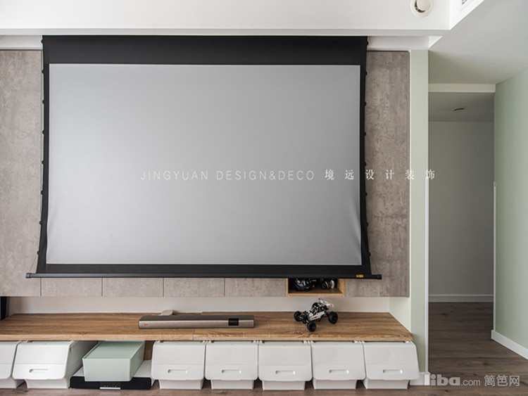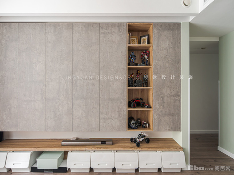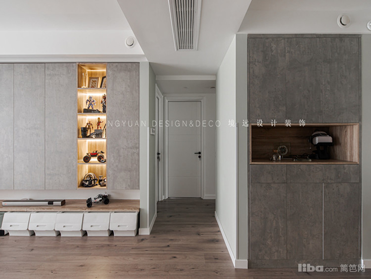 隐蔽式收纳,增加储物空间的同时,兼具美观性。开放式厨房和餐厅相连,增加生活的趣味性及互动性。客厅展示