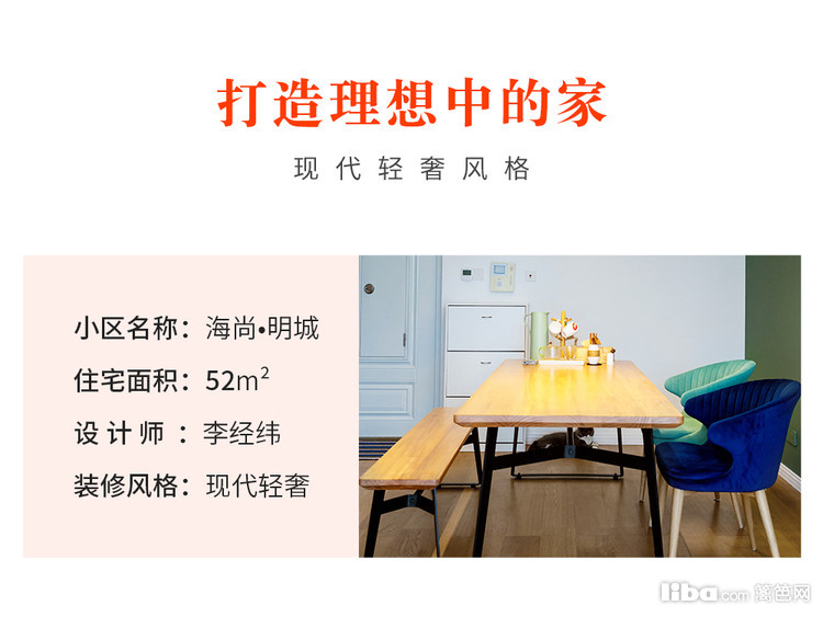 整体风格偏现代轻奢,业主喜好清新自然、时尚又大方的风格。