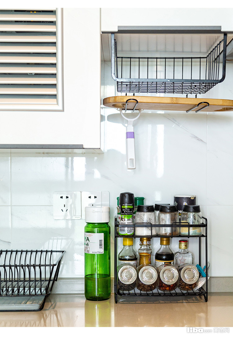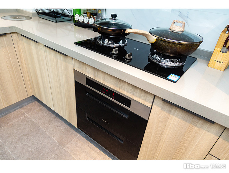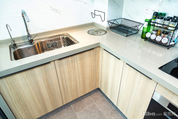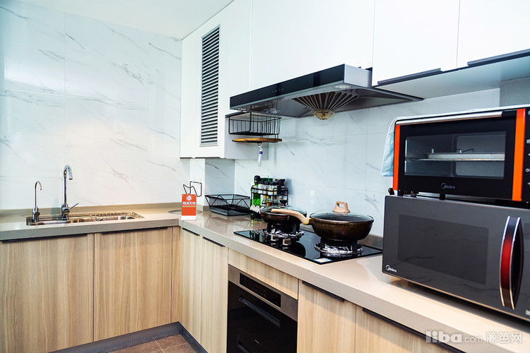 如果没有两边的移门,可以说这是一个开放式厨房了。L型的经典布局还是很实用的。