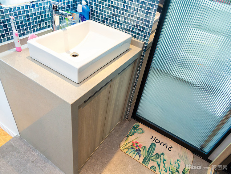 为了衣帽间,卫生间放淋浴房是不太可能了,只能做成浴帘式。马赛克小方砖和这面镜子搭配简直美到爆炸,洗漱也心情也变好了。