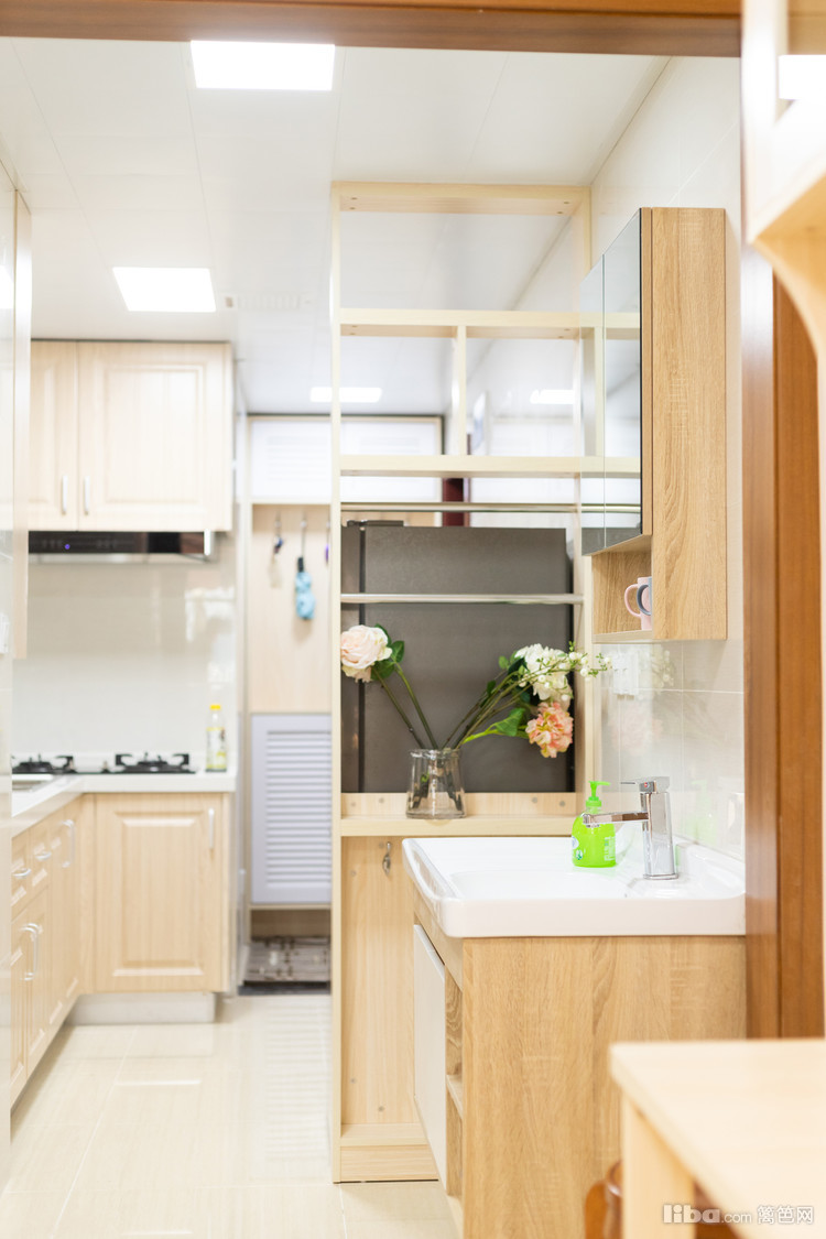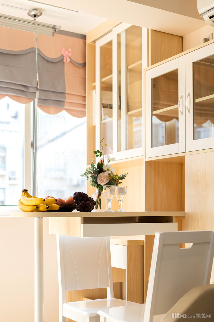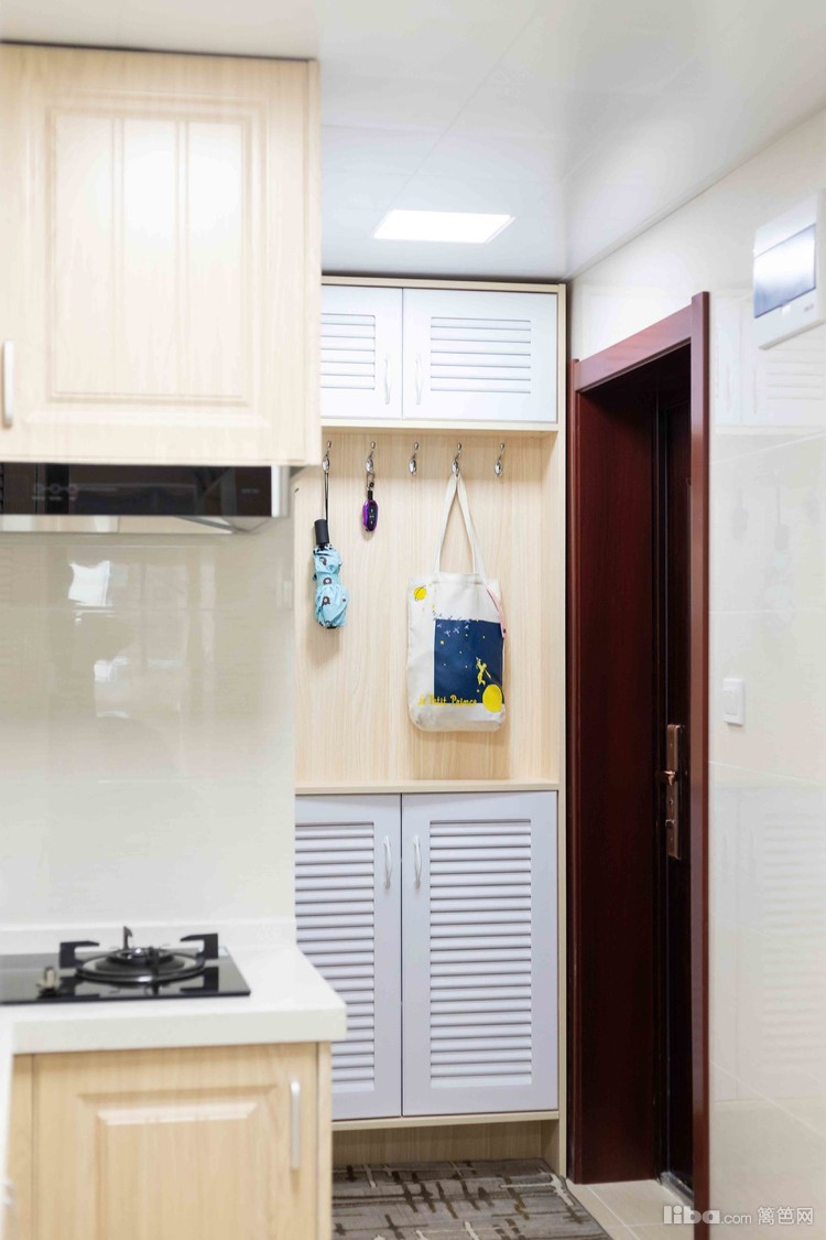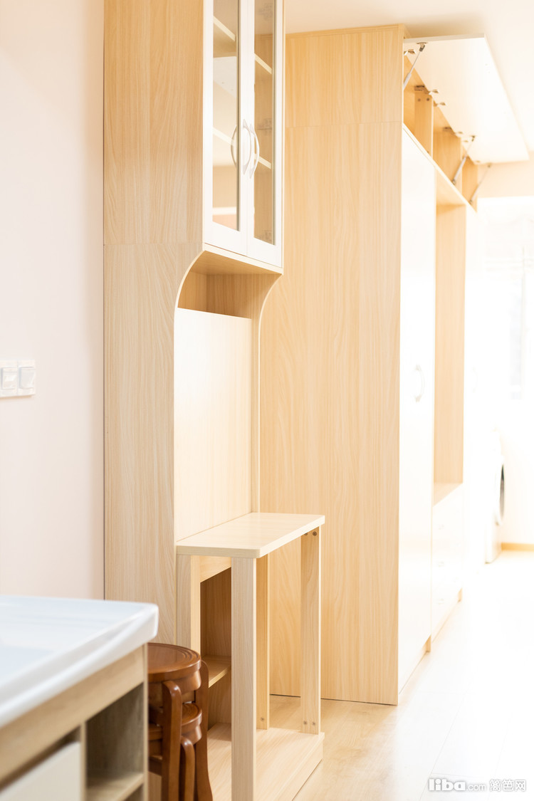 考虑到空间的狭小,定制了一面超薄鞋柜,鞋柜内部做了倾斜式设计,这样就可以装下20双鞋子。